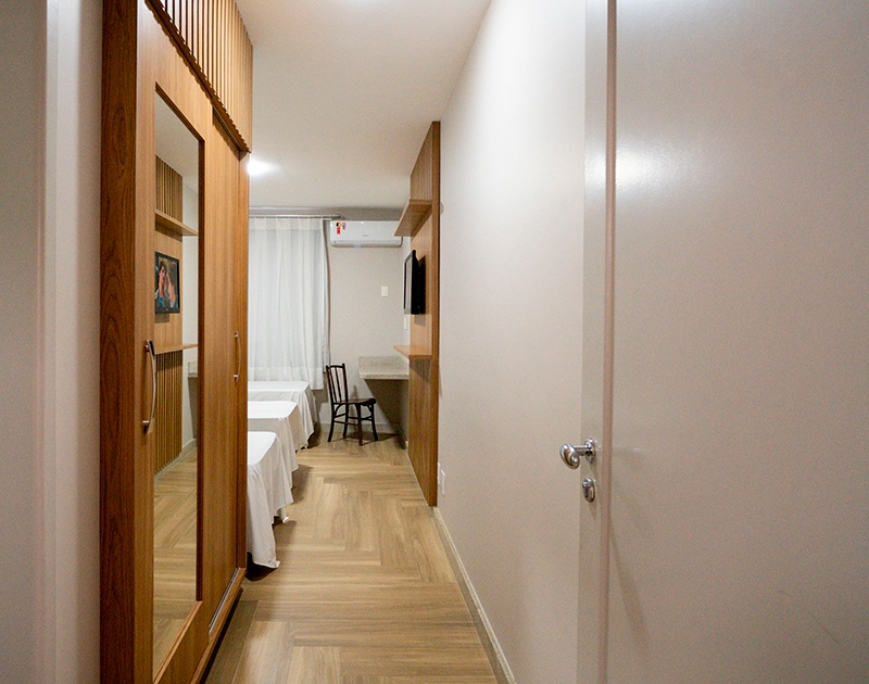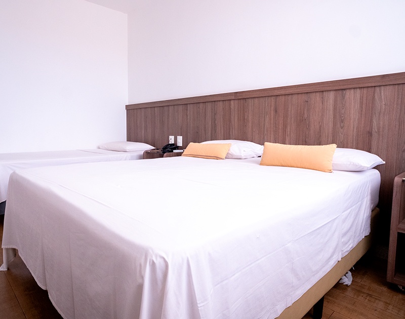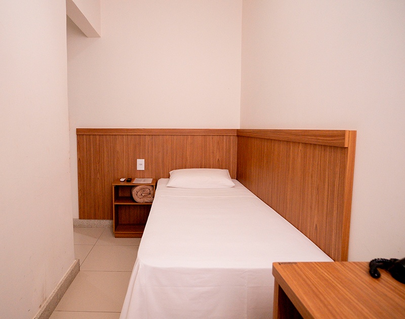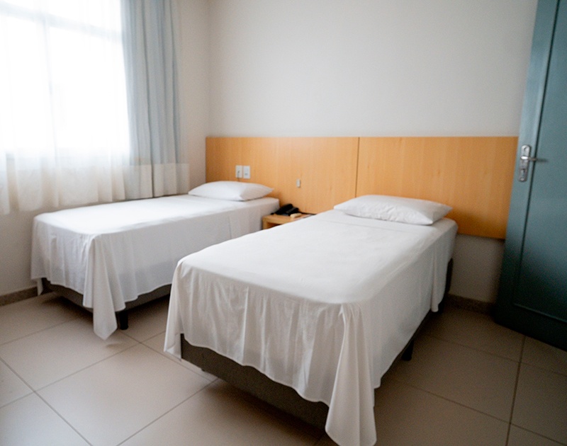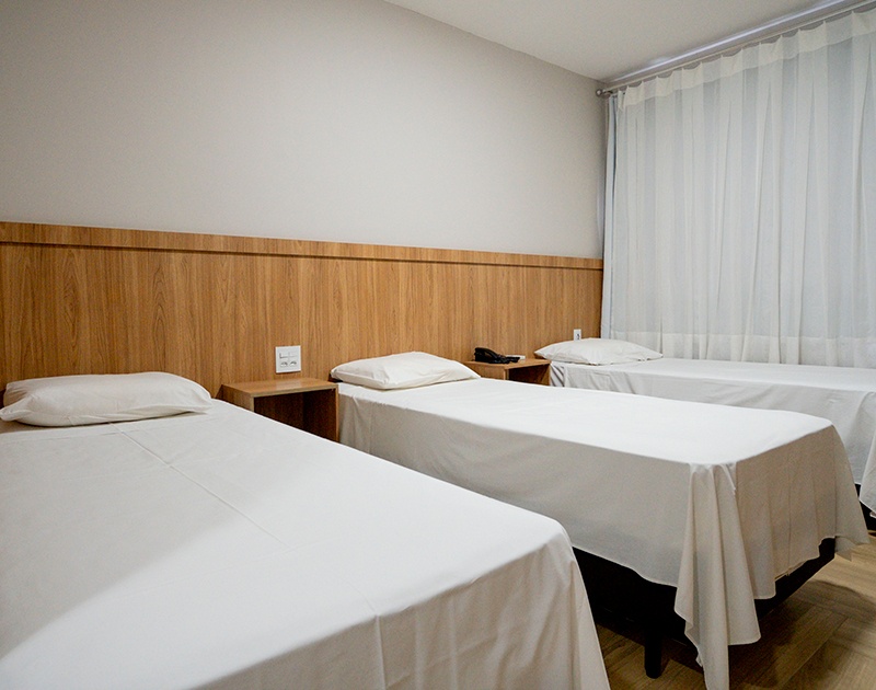 Nossos quartos são modernos e bem equipados, proporcionando o descanso ideal após um dia de trabalho ou diversão. Todas as acomodações contam com ar-condicionado, Wi-Fi gratuito de alta velocidade, TV de tela plana com canais a cabo, frigobar e banheiro privativo com amenidades de banho.